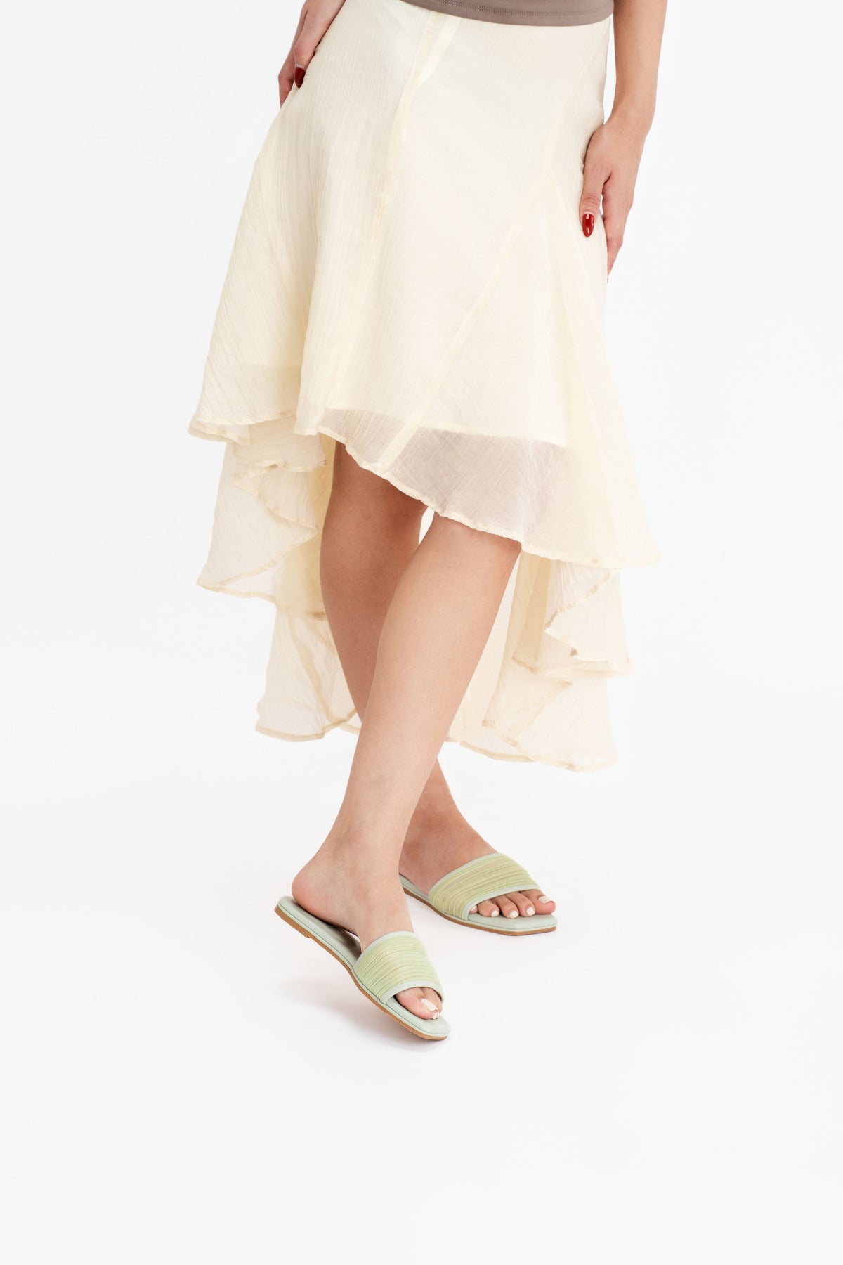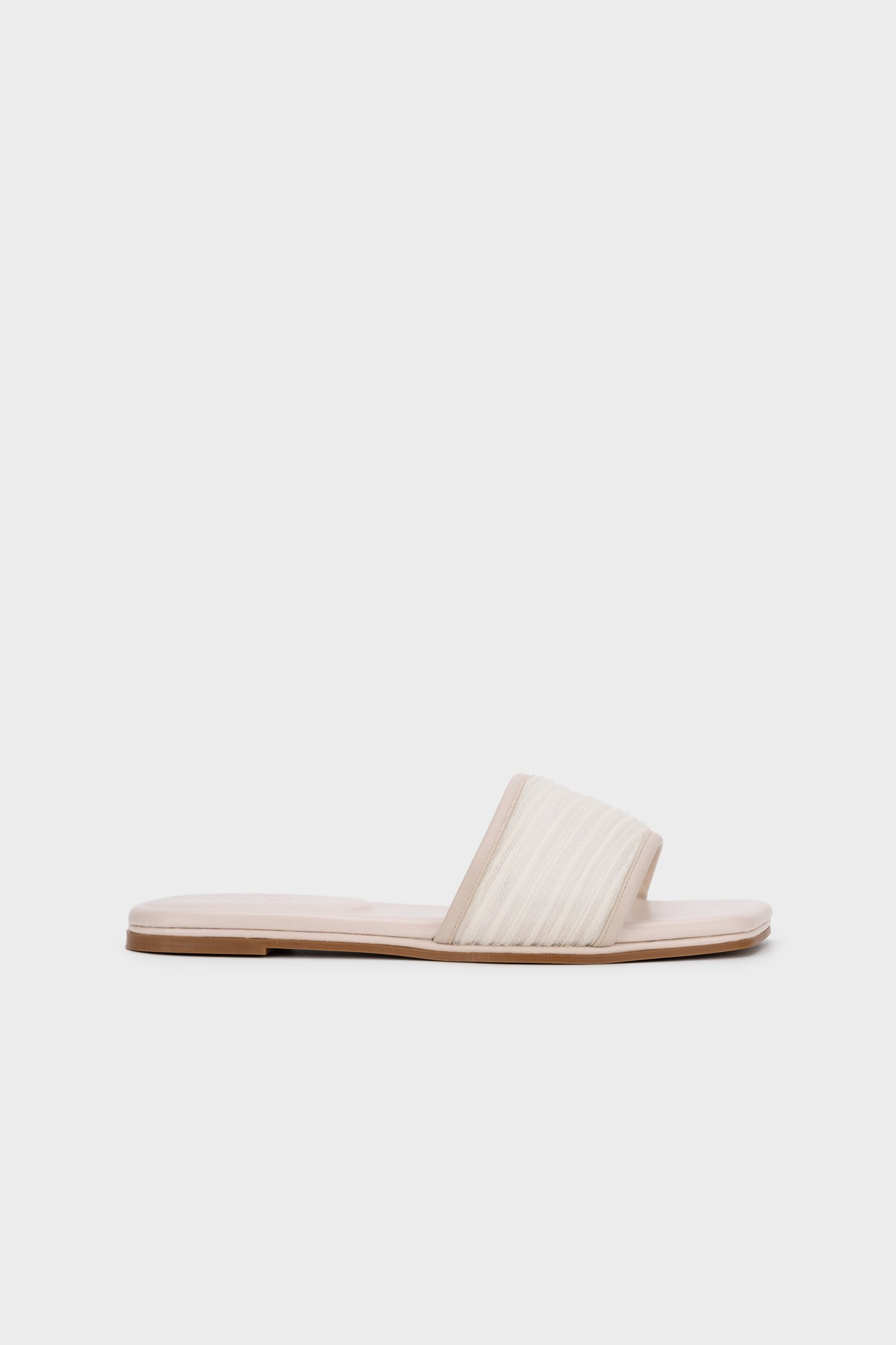 Lightweight and effortlessly comfortable, this mesh pleated flat slide is designed for relaxed everyday wear with a soft feminine touch. Featuring a textured pleated mesh upper paired with clean square-toe lines, it creates a modern yet easygoing silhouette that’s simple to style.