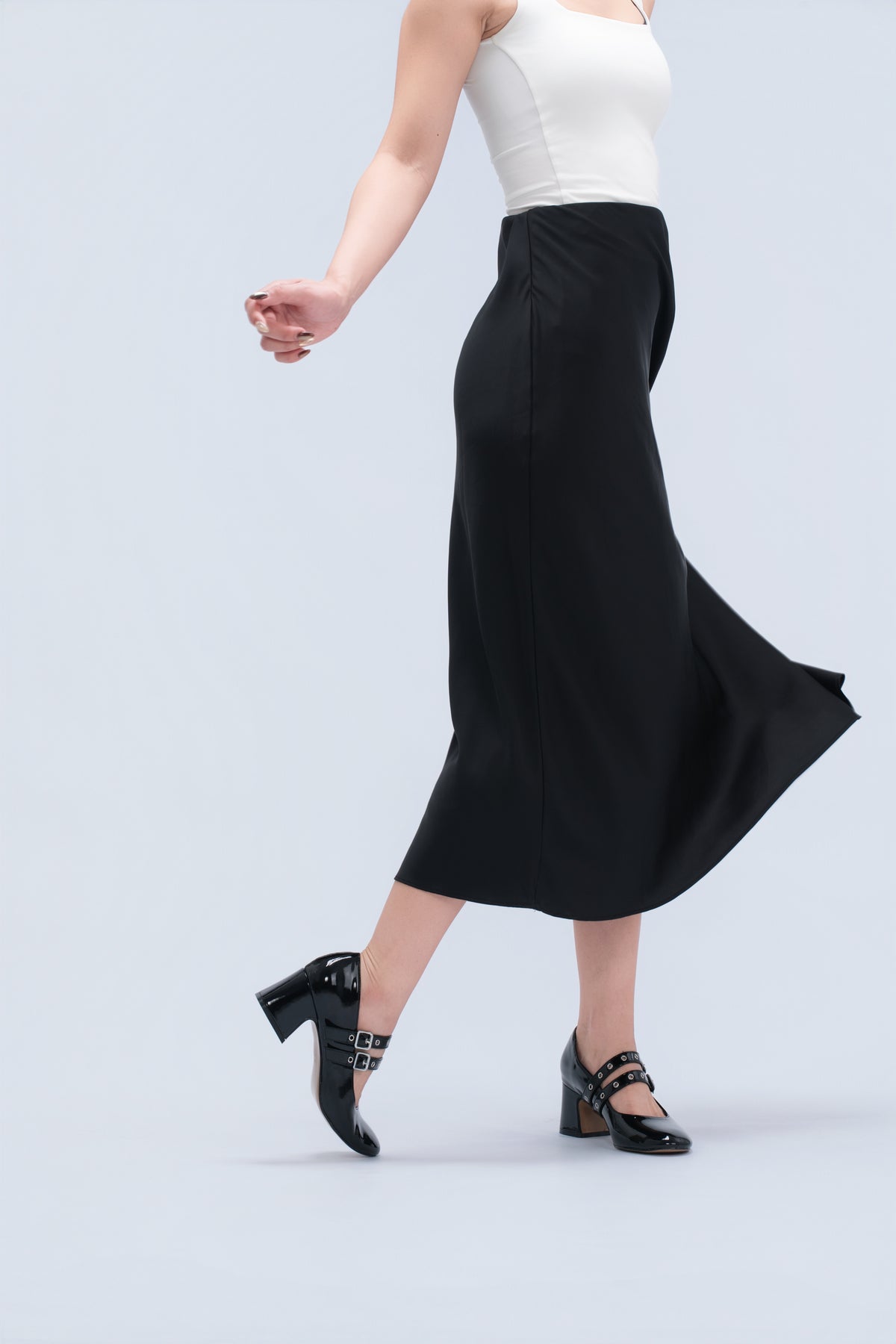 PATENT DOUBLE BUCKLE MARY JANE BLOCK HEEL PUMPS